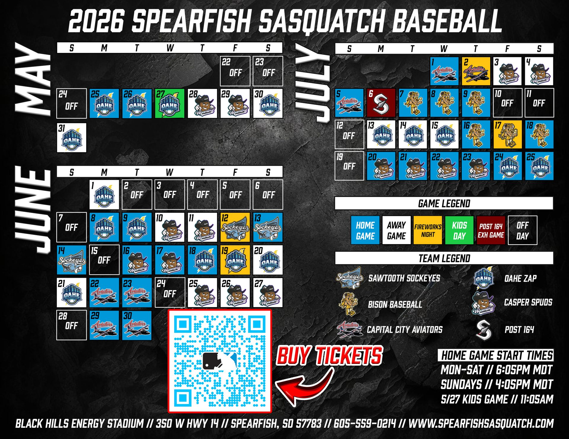 Whether you are looking for single-game tickets or full-season, click here to be purchase your Spearfish Sasquatch Baseball admission tickets today.
